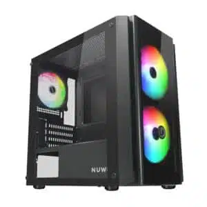 Il sistema di raffreddamento del Nuwo Blitz R28 e pensato per garantire un flusso d’aria ottimale, mantenendo temperature basse anche sotto carico. Il case e dotato di tre ventole preinstallate (due da 140 mm sul fronte e una da 120 mm sul retro), con supporto per ulteriori ventole da 120 mm sulla parte superiore e sul copri PSU. Inoltre, offre la compatibilita con radiatori per raffreddamento a liquido: fino a 240 mm sul frontale e 120 mm sul retro, dando la possibilita di ampliare ulteriormente le opzioni di raffreddamento a seconda delle esigenze.