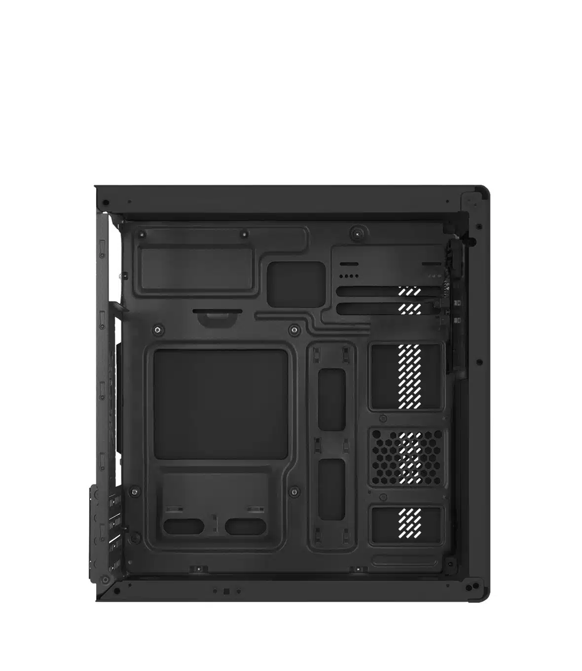 Il Nuwo Eguera A101 permette l’installazione di una ventola da 80 o 92 mm sul retro per garantire un raffreddamento efficiente. Il case viene fornito senza ventole incluse, ma offre la possibilita di espansione per gestire al meglio la dissipazione del calore.