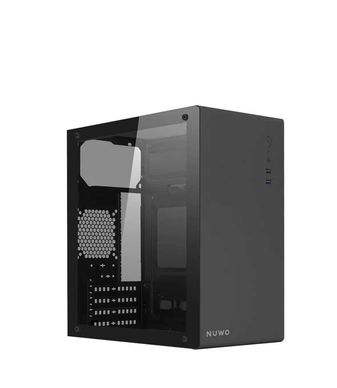 Il case Nuwo Eguera A111 si distingue per il suo design professionale e lo spazio interno ottimizzato per ospitare componenti ad alte prestazioni. E compatibile con schede madri micro-ATX e mini-ITX, offrendo versatilita e praticita per diversi tipi di configurazioni.