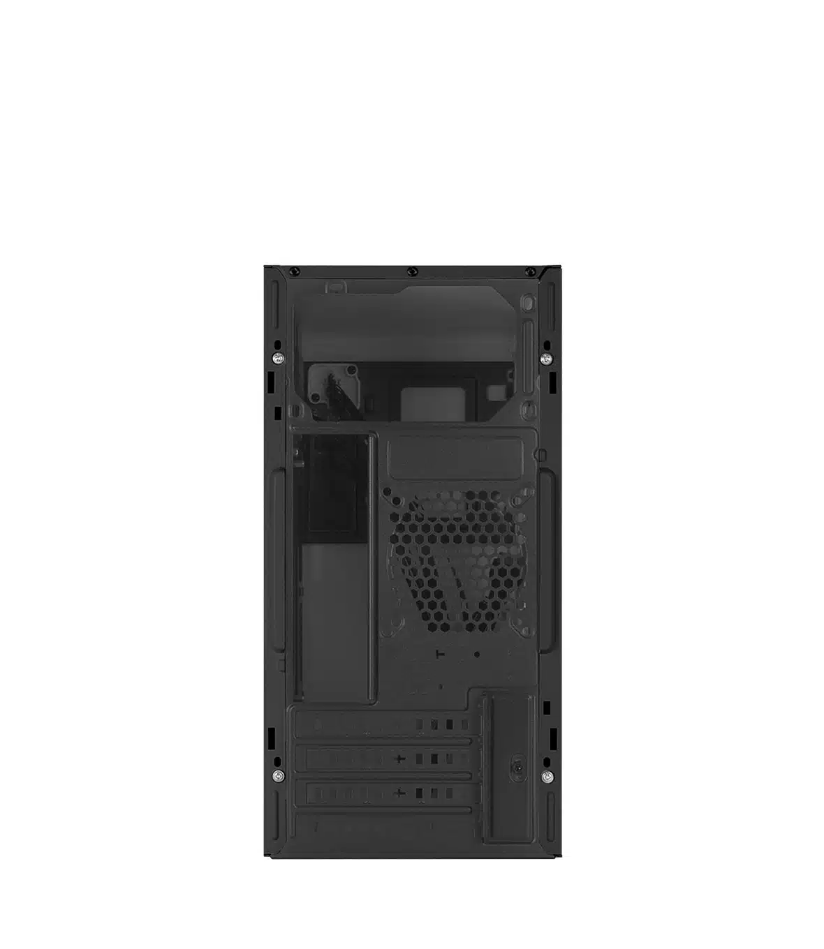 Il Nuwo Eguera A121 permette l’installazione di una ventola da 80 o 92 mm sul retro per garantire un raffreddamento efficiente. Il case viene fornito senza ventole incluse, ma offre la possibilita di espansione per gestire al meglio la dissipazione del calore.