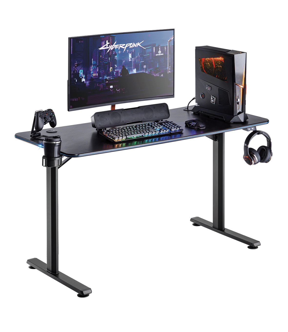Le gambe a forma di I sono realizzate in acciaio laminato a freddo con una delicata trama metallica, con portata fino a 75 kg. Dotata di due passacavi per fornire una postazione di gioco pulita.