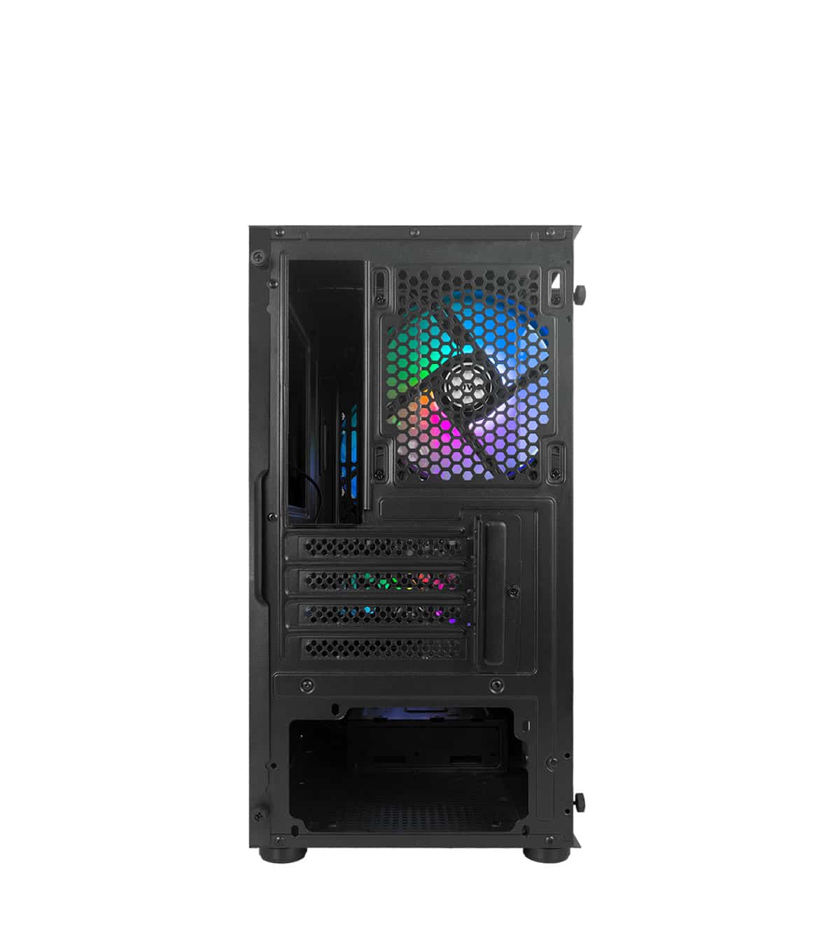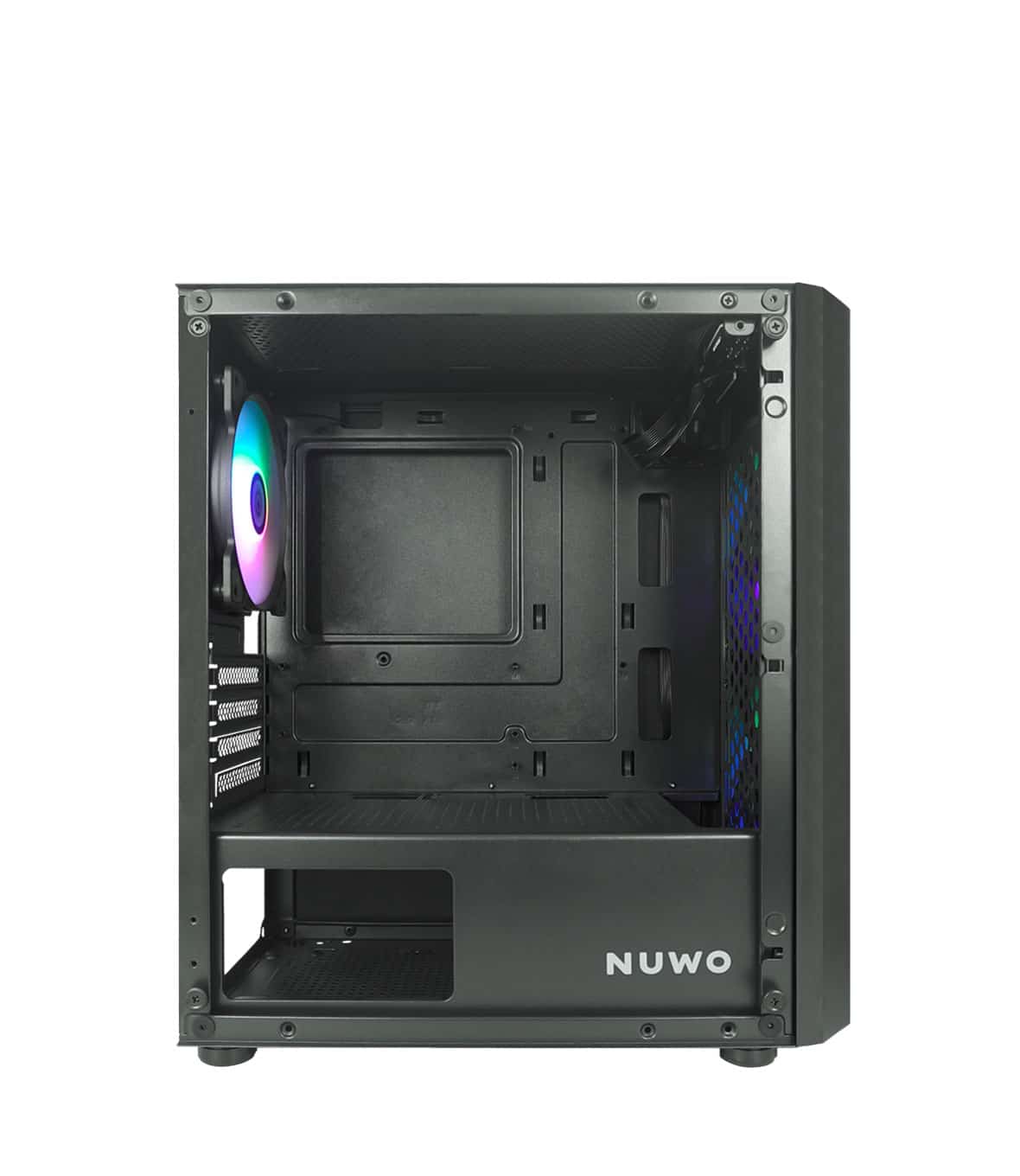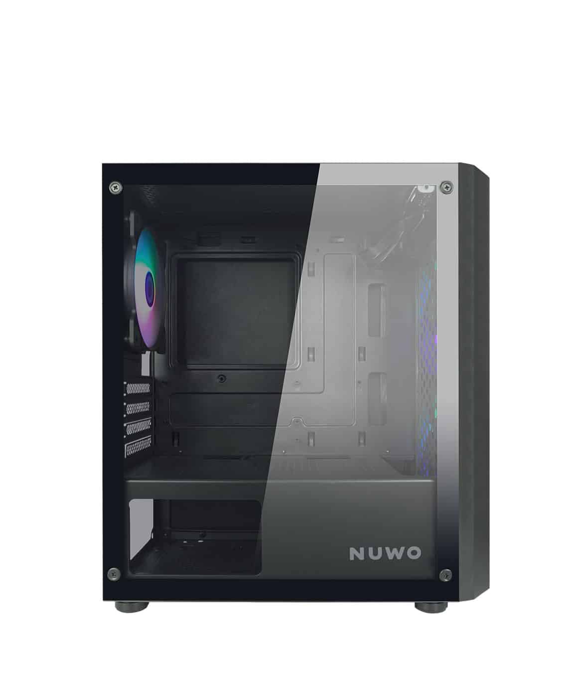 Il sistema di raffreddamento del Nuwo Blitz R24 e pensato per garantire un flusso d’aria ottimale, mantenendo temperature basse anche sotto carico. Il case e dotato di tre ventole preinstallate (due da 140 mm sul fronte e una da 120 mm sul retro), con supporto per ulteriori ventole da 120 mm sulla parte superiore. Inoltre, offre la compatibilita con radiatori per raffreddamento a liquido: fino a 240 mm sul frontale e 120 mm sul retro, dando la possibilita di ampliare ulteriormente le opzioni di raffreddamento a seconda delle esigenze.