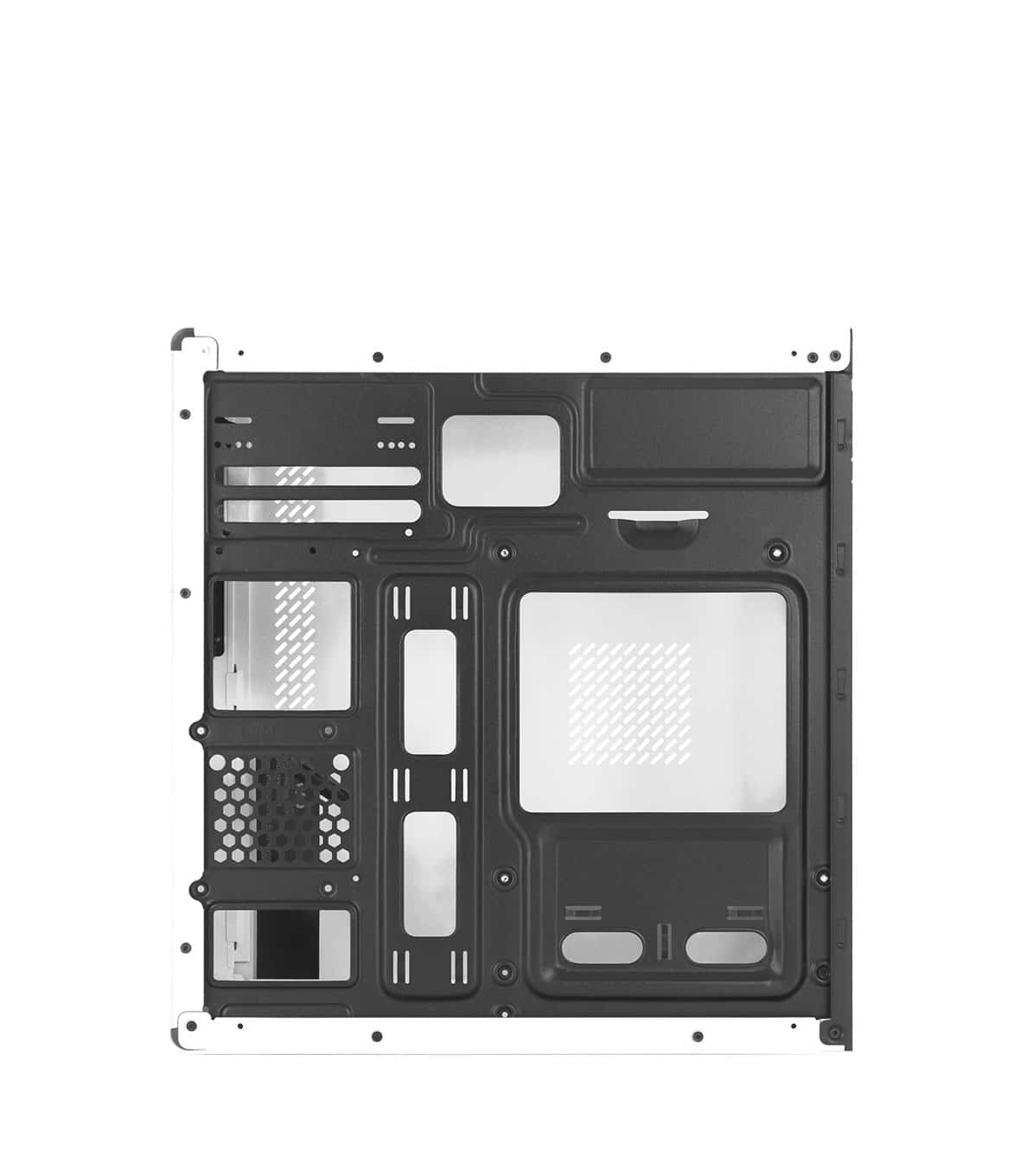 Il Nuwo Eguera A113 permette l’installazione di una ventola da 80 o 92 mm sul retro per garantire un raffreddamento efficiente. Il case viene fornito senza ventole incluse, ma offre la possibilita di espansione per gestire al meglio la dissipazione del calore.