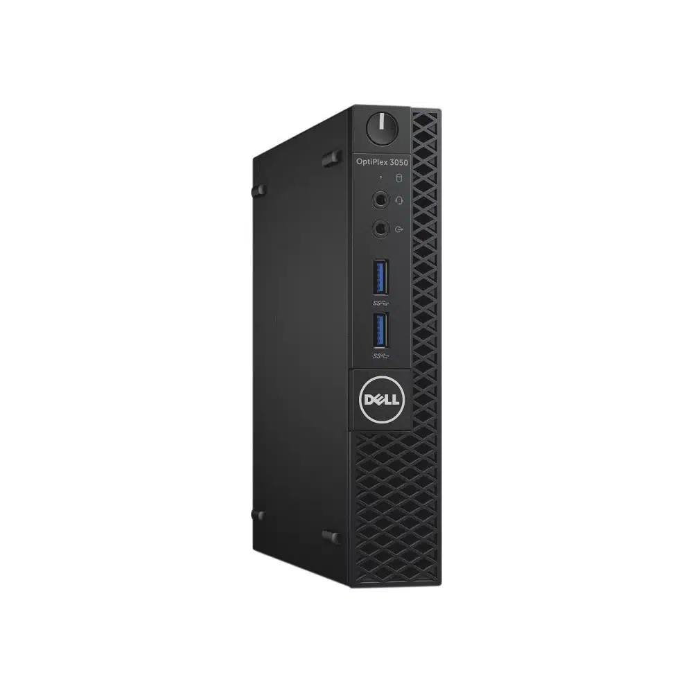 Questo Dell OptiPlex 3050 Micro | Intel 7th Gen refurbed e un efficiente PC di piccole dimensioni progettato per un utilizzo aziendale. Il design ultracompatto permette di posizionarlo in modo discreto sulla scrivania, con la possibilita di connessione USB e jack audio attraverso le porte frontali.